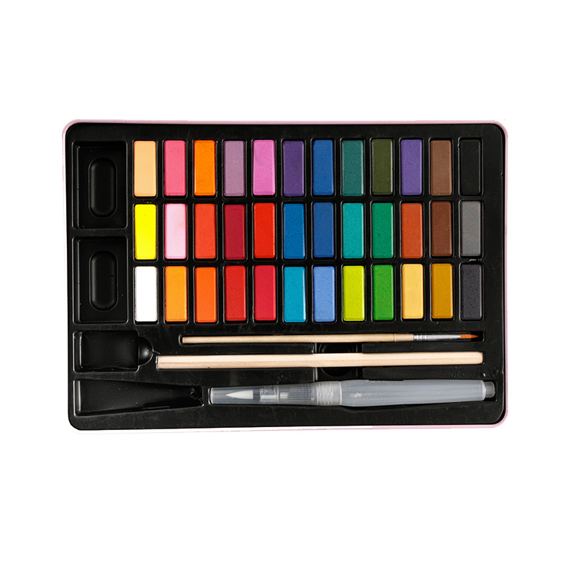 See 36 värvi pakett sobib suurepäraselt oma meistriteoste loomiseks. Sisaldab metallkarpi, akvarellipintslit ja kandilisi tahvelarvuteid ning vastupidavat metallkorpust, et see kõik korras hoida. Ideaalne oma unistuste meistriteose maalimiseks!